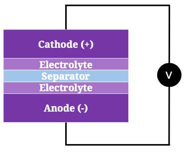 The basic unit of a battery is called a cell. There are four main components of a cell: two electrodes (a cathode and an anode), an electrolyte, and a separator.