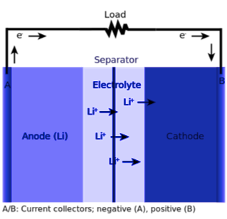 Electrolyte, the movement medium: The electrolyte allows Lithium ions to travel between electrodes to balance the electron flow in the chemical reaction (more on this later). A common electrolyte for Li-ion batteries is lithium hexafluorophosphate salt mixed in with some other organic carbonates.
